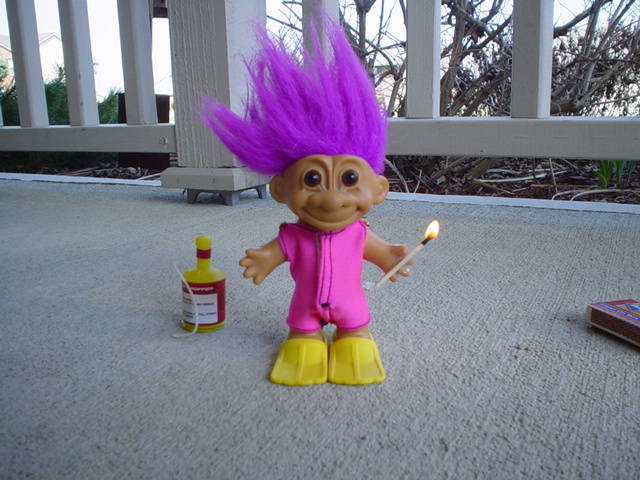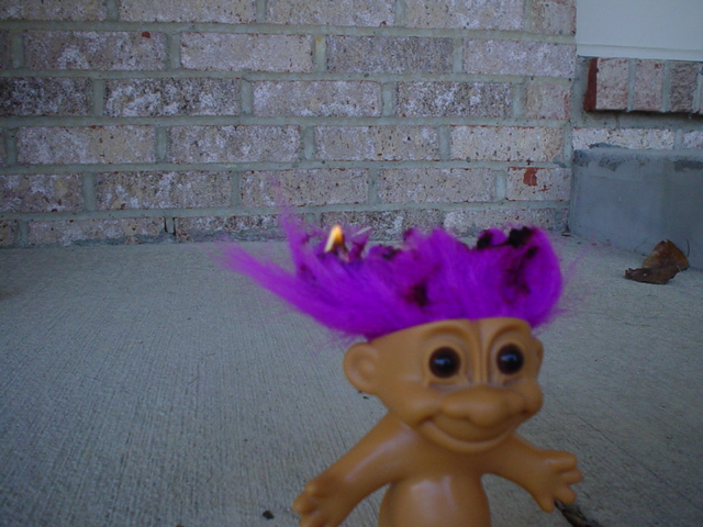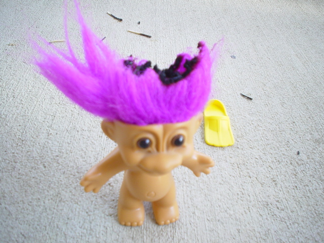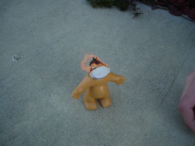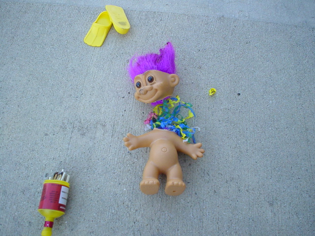 She took all his confetti out (Billy's are made like that) and stuffed him with napkins. She then lit him on fire.
