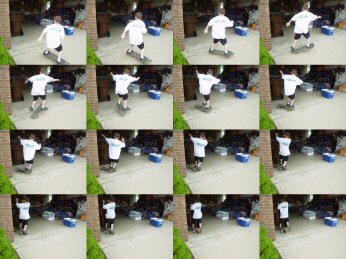 Josh doing a shoveit on skateboard.
